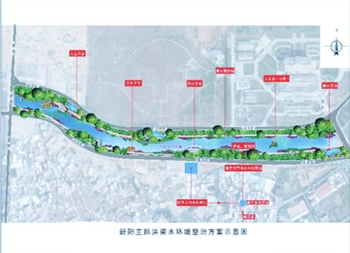 新阳主排洪渠工程起于新景桥,终于新阳大桥,渠长约4.3km
